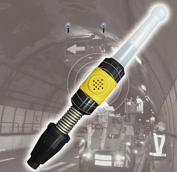 上部構造物と本製品が接触すると、音と光で作業員に危険を知らせます。