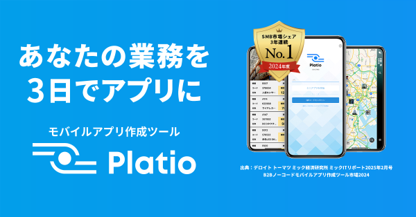 報告書、点検票、棚卸表など現場の紙業務を解消し、自社の業務に合ったモバイルアプリを簡単に作成できます。