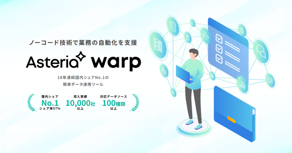 アステリアは業務アプリの作成の「Platio」と、システム同士のデータ活用を推進する「ASTERIA Warp」をご紹介します。