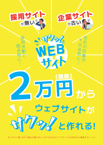 月額2万円から始められるサブスク型「サクッと!WEBサイト」。制作して終わりではなく、メンテナンスを含めて長期的にサポート!安心してご利用いただけます。